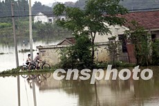 安徽淮河分蓄洪以來,滁州農村部分房屋被洪水圍困,給當地群眾的出行帶來很多不便。中新社記者:盛佳鵬