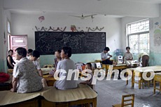 安徽滁州部分受災民眾臨時轉移到一所學校的教室內休息。受日前強降雨影響,安徽滁河、新安江、巢湖流域的西河等支流先后發生超警戒水位洪水。中新社記者:盛佳鵬