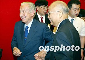 國際奧委會終身名譽主席薩馬蘭奇的著作《奧林匹克回憶》中文版首發式七月八日在北京人民大會堂舉行。國際奧委會執行委員、中國奧委會名譽主席何振梁出席首發式并向薩馬蘭奇表示祝賀。中新社記者:毛建軍