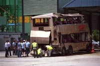 據香港大公報報道,出事九巴殘骸于前日下午已被運至大嶼山車輛扣留中心,并于昨日交由警方﹑運輸署及九巴公司聯手進行檢查。