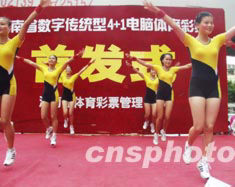 七月十二日,海南省率先在全國(guó)推出“四加一”體育彩票新玩法。在海口金世紀(jì)廣場(chǎng)舉行的首發(fā)儀式上,模特跳舞表演助興。作者:王辛莉