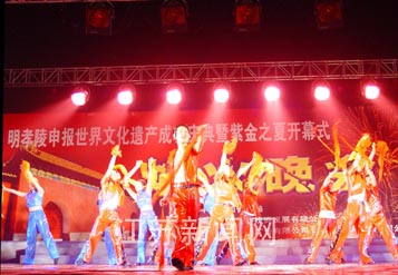 這臺晚會7點30分由大型舞蹈“盛世年華”開場,“梅花三弄”、“龍的傳人”、“陽光征程”等歌舞,逐漸把晚會推向高潮。9點整,2600個組合的煙火禮花齊聲鳴放,把玄武湖畔、紫金山麓映照得萬紫千紅,整個過程一直持續1小時,這是南京歷史上燃放煙火規模最大的一次;盍λ纳涞奈枳,五彩繽紛的焰火,熱辣涌動的人群,組成一個激情流火的仲夏夜。