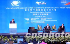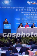 由博鰲亞洲論壇、世界旅游組織合辦的“重振亞洲旅游業會議”,7月14日在香港會展中心舉行。會議主題是重振亞洲旅游業,在SARS對亞洲旅游業打擊以后,如何恢復人們對旅游業信心。中新社記者:洪少葵