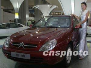 十五日開幕的第三屆中國長春汽車博覽會上,中、法合資生產的賽納轎車,因其性能價格比上的優勢,成為消費者關注的焦點。該車發動機排量為2.0,售價16萬元左右。中新社記者:趙振清