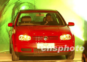 中國一汽-大眾新生產的世界經典兩廂高爾夫轎車15日在長春一汽-大眾總裝車間下線,并由德國大眾畢睿德博士駕駛展現在人們面前。這款新車的發動機排量有1.6、1.8、2.0三種,售價在15萬至18.5萬元人民幣,為消費者提供了知性、謙和、理性的需求。中新社記者:趙振清