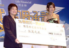 歌星陳慧琳7月17日在香港出席《為夢想找一個承諾》開幕禮,主辦機構之一永明金融(香港)有限公司捐出港幣五萬圓予「陳慧琳兒童助學基金」,以支持她幫助貧困學童實現夢想。中新社記者:鄧慶樂
