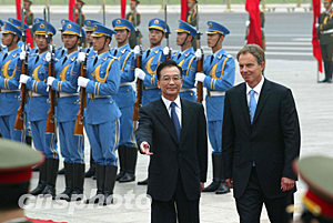 溫家寶歡迎布萊爾訪華 將會談并簽有關合作文件
