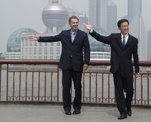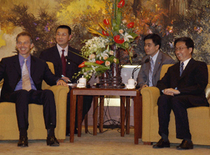 布萊爾拜訪了韓正市長并就雙方共同感興趣的經(jīng)濟及商業(yè)合作進行了討論。雙方主要議題是通過英中合作來加強中國經(jīng)濟的發(fā)展;研究英國公司在該合作進程中所起的作用;討論影響上海及中國其他地區(qū)商務環(huán)境的有關(guān)事宜。