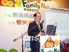 香港中文大學22日推出一套“香港家庭網絡”,這項服務能讓家長安坐辦公室,也能了解子女在家中上網的情況,有助消除家庭成員的“網絡隔膜”。圖為中大教授黃寶財在記者會上講解該網絡功能。作者:裘之越
