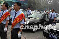 由北京市公安局公安交通管理局等主辦的首汽股份“倡導交通文明,禮讓斑馬線”活動啟動儀式,七月二十四日舉行,儀式上部分司機代表宣誓。中新社記者:任海霞