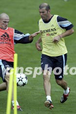 西班牙皇家馬德里足球隊(duì)二十六日下午在昆明冒雨訓(xùn)練,齊達(dá)內(nèi)表演嫻熟的盤帶過人技巧。中新社記者:毛建軍