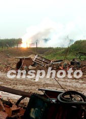 八月一日上午,河北辛集市郭西煙花爆竹廠原料庫殘存的十八噸可燃爆物成功引爆,至此,“7.28”特大事故隱患順利排除。這十八噸可燃爆物是在事故現場清理過程中發現的,由于當地連日下雨,使這些大量堆積的藥物有升溫自燃自爆的可能。中新社記者:武仲林