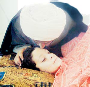 醫院的人員給了納克霍爾一個口罩和罩衣,然后領她進了一個病房,與這家醫院其它病房的混亂場面相比,這間病房相當安靜,里面一個婦女坐在一個低矮的床上,而床上一個小男孩兒躺一個骯臟的毯子上,身上罩了一個生了銹的金屬籠子,頭上包著厚厚的白繃帶,他用大大的眼睛靜靜地看著那個婦女,令人心驚肉跳的是他的兩只胳膊從肩膀處就沒有了,下巴以下的身體軀干上有一塊大大的傷疤,被燒成了黑木炭樣。