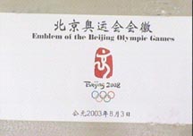 據介紹,2008年北京奧運會會徽有三大特點:第一、他體現了燦爛的中華文明;第二、體現奧林匹克更快、更高、更強的主旨和精神風貌;第三、既體現中華民族燦爛的文明,同時又展示了當代中國的動感和活力。