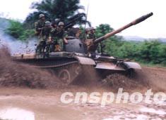 八月的海南五指山區某裝甲部隊頂著高溫烈日艱苦訓練。作者:蔣聚榮
