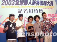 樂壇組合Twins、Boy’Z及去屆新秀吳浩康8月5日在香港出席《全球華人新秀香港區選拔賽》記者會,與九位準新秀會面后,贊新秀表現不俗。中新社記者:鄧慶樂