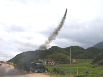 8月4日下午,江西省委書記孟建柱頂著烈日,親臨吉水縣醪橋鄉人工增雨作業炮點視察、慰問,指出人工增雨是有益于人民群眾的事業。16時50分,醪橋作業區出現有利天氣。孟建柱書記親自摁動人工增雨作業火箭發射按鈕(如圖),一枚增雨火箭彈呼嘯著撲入云層,作業影響區隨后普降中雨……(江西省減災委員會辦公室)