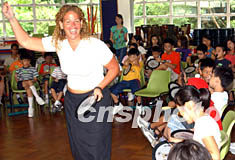 八月十一日,香港堅尼地小學特邀外籍音樂教師,指導小朋友學習鼓樂。中新社記者:錢興強