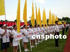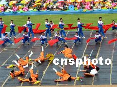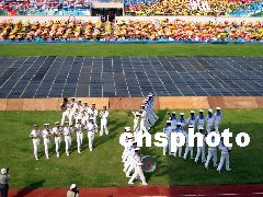 2003年8月10日下午5時(shí),以《青春放飛新世紀(jì)》為主題的廣東省第六屆大學(xué)生運(yùn)動(dòng)會(huì)開幕式在湛江師范學(xué)院體育場(chǎng)進(jìn)行第二次預(yù)演,規(guī)模空前,精彩紛呈。熱烈、奔放、高昂、大氣的格調(diào)令人耳目一新。李滿青 攝