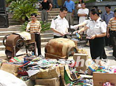 十二日,福建省在福州集中銷毀走私盜版光盤九十多萬片,以配合中國各省、市、自治區(qū)、直轄市同時(shí)舉行的2003年中國銷毀走私光盤大行動(dòng)。作者:祝敏松