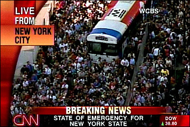 美國各大電視網全部現場直播,從畫面上看,紐約街道和高速公路大塞車,市民紛紛涌上街頭,把主要街道擠得水泄不通。最新傳來的消息說,紐約的電話、地鐵、航空、交通指揮系統全部陷于停頓;曼哈頓的一個電廠和十四街地鐵站變壓器因為斷電引發煙火,更引起市民憂慮。本社記者記者試圖與紐約分部的記者電話聯系,但無法聯通。