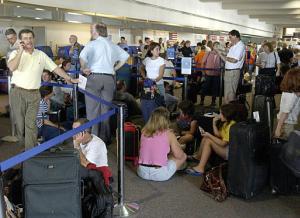 紐約市內街道上擠滿車輛,動彈不得。位于三十四街和第七大道口的賓州車站一片漆黑,街上擠滿了人。