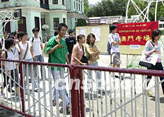 原定于六月進行的中國普通高等學校二零零三年招收華僑、港澳、臺灣省學生考試,因受“非典”影響改于本月十五日至十七日進行,圖為澳門考區的七百余名應屆高中畢業生在培正中學參加考試。中新社記者:李剛