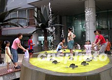 香港商場為顧客提供一個戶外活動好地方。如今,為了吸引顧客,商場設(shè)施要別樹一幟。十七日,顧客及游人在香港新都會廣場中央的一座別具特色的互動噴池觀賞游玩。作者:譚達明
