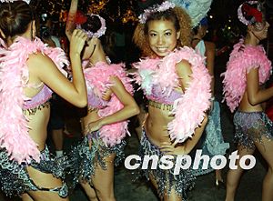 “好客日”和“香江明珠激光匯演”八月十七日在香港維多利亞港畔舉行,圖為香港歡歌艷舞迎“好客日”。中新社記者:錢興強(qiáng)