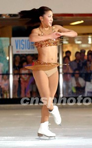 香港迪斯尼樂園邀請奧林匹克花樣滑冰好手關穎珊到港宣傳,8月18日在太古城冰上皇宮表演精湛技藝,為來港旅客及香港迪斯尼樂園工程打氣。中新社記者:洪少葵