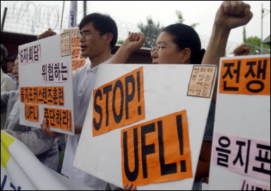 這一演習立即遭到了部分韓國民眾的抗議,這些民眾高舉著用韓文和英文書寫的“停止舉行乙焦演習”的醒目標語聚集到駐韓美軍總部所在地--韓國漢城龍山美軍基地外,高呼立即停止軍演的口號。(徐冰川/聞新芳)