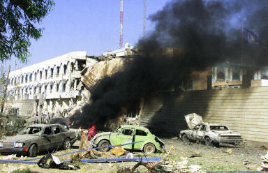 中新網8月19日電當地時間8月19日16:40左右(北京時間8月19日20:40左右),設在伊拉克首都巴格達運河酒店的聯合國辦事機構總部發生強烈爆炸,造成三人死亡,數十人受傷。有證據表明爆炸是汽車炸彈造成的。