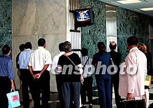 聯(lián)合國駐巴格達(dá)總部大樓十九日被炸后,紐約聯(lián)合國總部的工作人員聚集在大廳內(nèi)的電視機(jī)前收看新聞,關(guān)注著在巴格達(dá)同事的安全。中新社記者:趙海燕