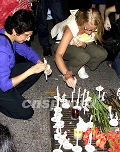 數百名聯合國職員以及一些普通民眾二十日晚間自發在聯合國總部對面的廣場上舉行燭光追思活動,悼念十九日發生在巴格達的炸彈襲擊事件中的遇難者。中新社記者:趙海燕