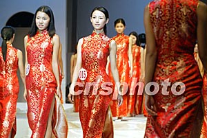 身著喜慶大紅旗袍的四十余名模特佳麗,二十三日在江西省會南昌市的T型臺上進行緊張排練,她們將參加當(dāng)日舉行的新絲路模特大賽南昌賽區(qū)總決賽。中新社記者:毛建軍