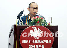 博鰲二十一世紀房地產論壇二00三屆年會二十三日在海南博鰲隆重開幕,SOHO中國董事長潘石屹在論壇上演講。作者:莫成雄