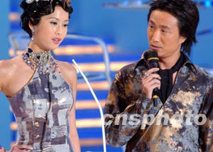 香港明星陳百祥 ,在二十三日晚紅(石+勘)香港體育館舉行的2003年度香港小姐競選決賽上擔任司儀 。中新社傳真 錢興強 攝