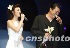 香港著名藝人“大傻”成奎安二十三日晚在2003年中國南昌新絲路模特大賽上擔當主持人,與當?shù)氐呐鞒秩送_亮相時似乎還有些“靦腆”。許多被內(nèi)地觀眾熟悉的香港藝人近年來頻頻北上,開拓內(nèi)地市場之勢強勁。中新社記者:毛建軍