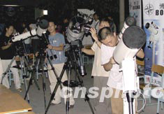 由廣東省天文學(xué)會主辦的“火星大沖”天文觀測活動,二十三日晚在廣州市113中學(xué)舉行。有史以來火星最接近地球的這一“火星大沖”天文現(xiàn)象,吸引了眾多市民前往觀測。作者:羅仰明