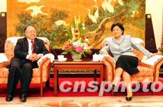 八月二十六日,全國政協副主席、中共中央統戰部部長劉延東(右)在北京會見了以廖長城為團長的香港律師界訪京團。中新社記者:盛佳鵬