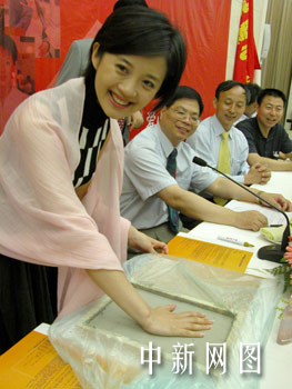 作為“愛心使者”的香港鳳凰衛視知名節目女主持人許戈輝,今天在愛心之旅的壯行儀式上,被推舉第一個按下象征著愛心與弱者牽手的手印。此行活動將采集100個貧困的受助人、100個愛心使者的手印,并用以制作一座“愛心牽手墻”,褒獎愛心人士,傳揚中華民族互愛互助的美德。