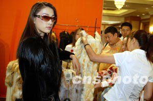 東北虎“巴黎之約,炫彩時尚”2003--2004國際皮草服飾最新流行趨勢發布會二十八日在哈爾濱舉行。中新社記者:毛建軍