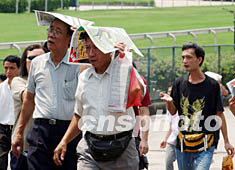 八月三十一日,香港馬季開鑼,由于三T彩金高達一億八千萬,吸引眾多馬迷冒著酷暑烈日前往沙田馬場試運氣。中新社記者:潘索菲