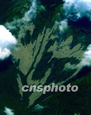 陜西省八月下旬連續降雨造成嚴重的山體滑坡和洪水災害。圖為秦嶺山區的一處滑坡。中新社記者:賈國榮
