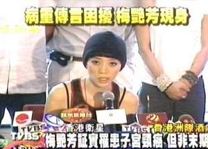 中新網9月5日電 藝人梅艷芳的健康狀況,最近成了香港熱門的八卦話題。有媒體言之鑿鑿說,這位香港歌壇的大姐大已身患重病。今天下午,梅艷芳在好友劉德華、張學友等圈中好友陪同下舉行記者會,說明自己的健康狀況,她坦承自己罹患了子宮頸癌。