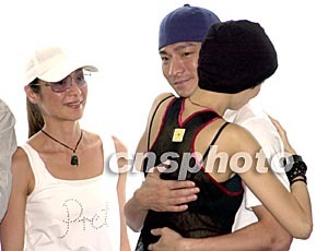 香港藝人梅艷芳9月5日在香港特意舉行記者會,向傳媒坦誠證實患上子宮頸癌,她表示將積極地接受治療,并得到圈中好友鼓勵支持。圖為梅艷芳與劉德華擁抱。作者:鄧慶樂