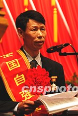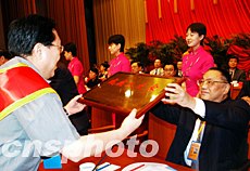 “第三次全國自強(qiáng)與助殘模范表彰大會”七日在北京隆重召開,殘聯(lián)主席鄧樸方高興地為扶殘助殘先進(jìn)人物頒發(fā)證書獎牌。激勵殘疾人自強(qiáng)不息、鼓舞社會各界奉獻(xiàn)愛心已成為殘聯(lián)的一項重要工作。中新社記者:王麗南
