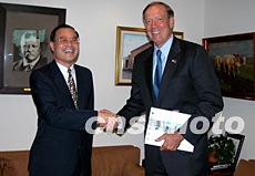 中國駐紐約總領事劉碧偉(左)到任剛好一個月。九月八日下午,他前往州長辦公室拜會了紐約州長帕塔基。劉碧偉表示,歡迎柏塔基州長在方便的時候訪華。中新社記者:陳建
