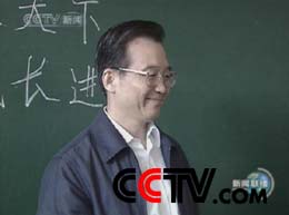 最后,溫家寶來到著名的北京第二實驗小學,到教研室看望教師,向他們祝賀節日。在五年級教研室里,他看到墻上寫著“用百分之百的熱情去解決百分之一的問題”,當即用筆記下來,并連聲稱贊這句話好。
