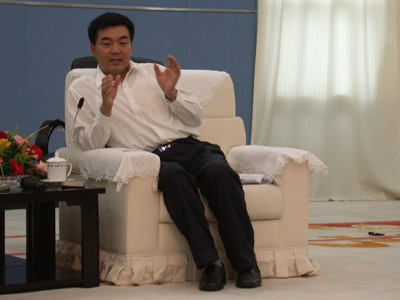 濟(jì)南市高新技術(shù)產(chǎn)業(yè)開發(fā)區(qū)管委會(huì)副主任王曉軍講解開發(fā)區(qū)發(fā)展情況。